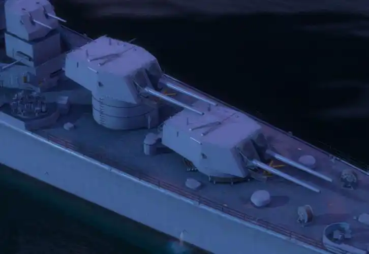 这张图清晰地展示了“彭萨科拉”级重巡洋舰的舰炮布局。其10门203毫米舰炮被巧妙地安置在2座双联装炮塔和2座三联装炮塔之中。舰艇前后各有一座双联装炮塔和三联装炮塔,且三联装炮塔被设计在较高位置,而双联装炮塔则布置在较低处。这种布局不仅体现了设计师的巧妙构思,也大大增强了舰艇的火力。