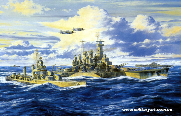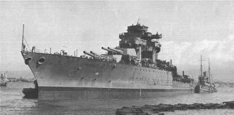 武备:9门406mm主炮(三联/3),20门127mm高炮(双联/10),16门28mm高炮(四联/4),12挺12.7mm高射机枪,3架水上飞机/2部弹射器